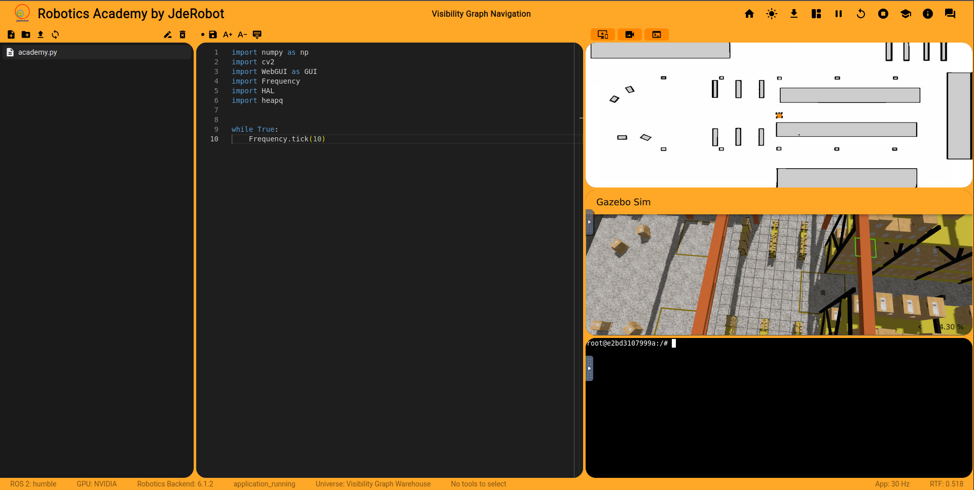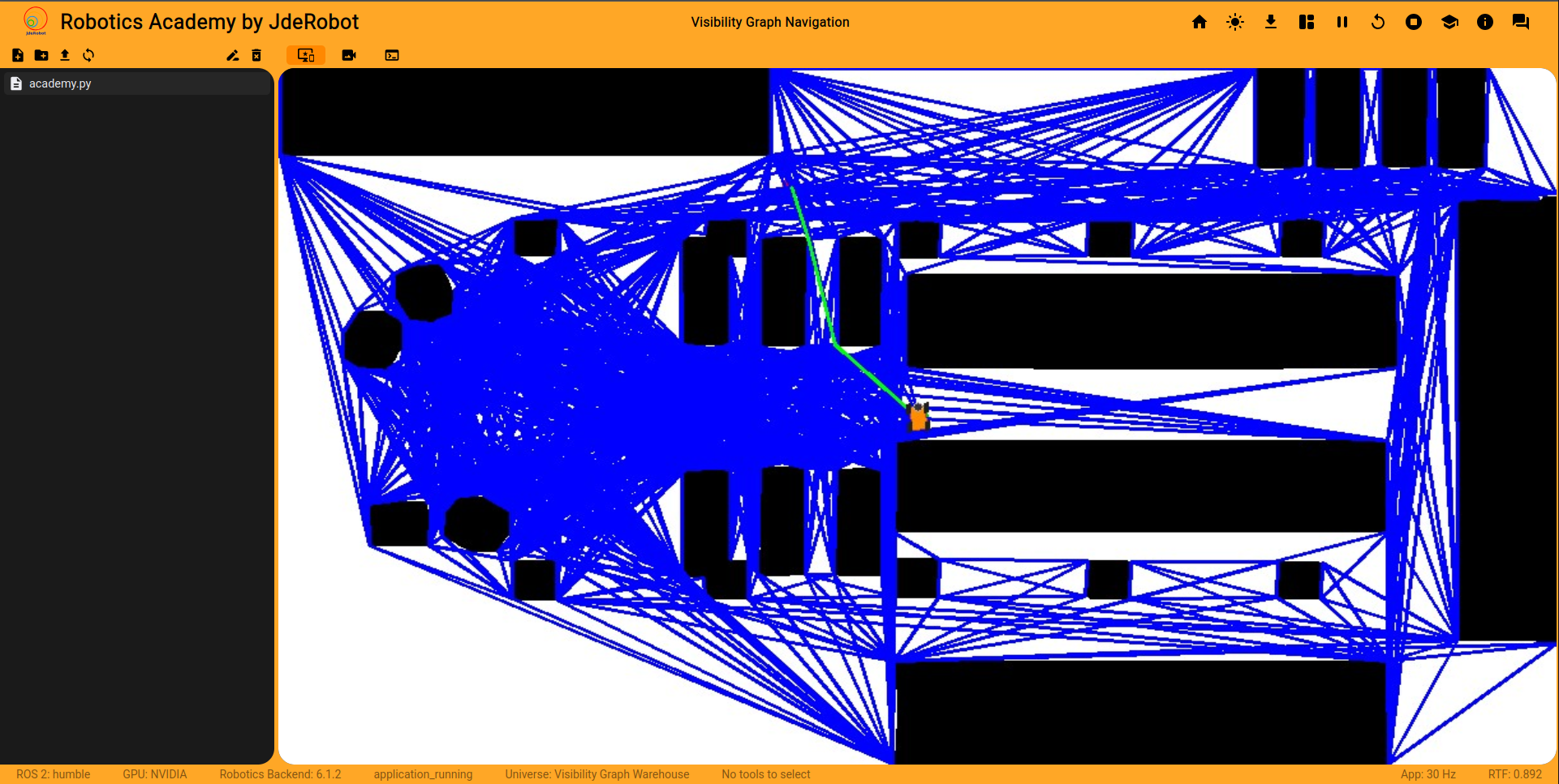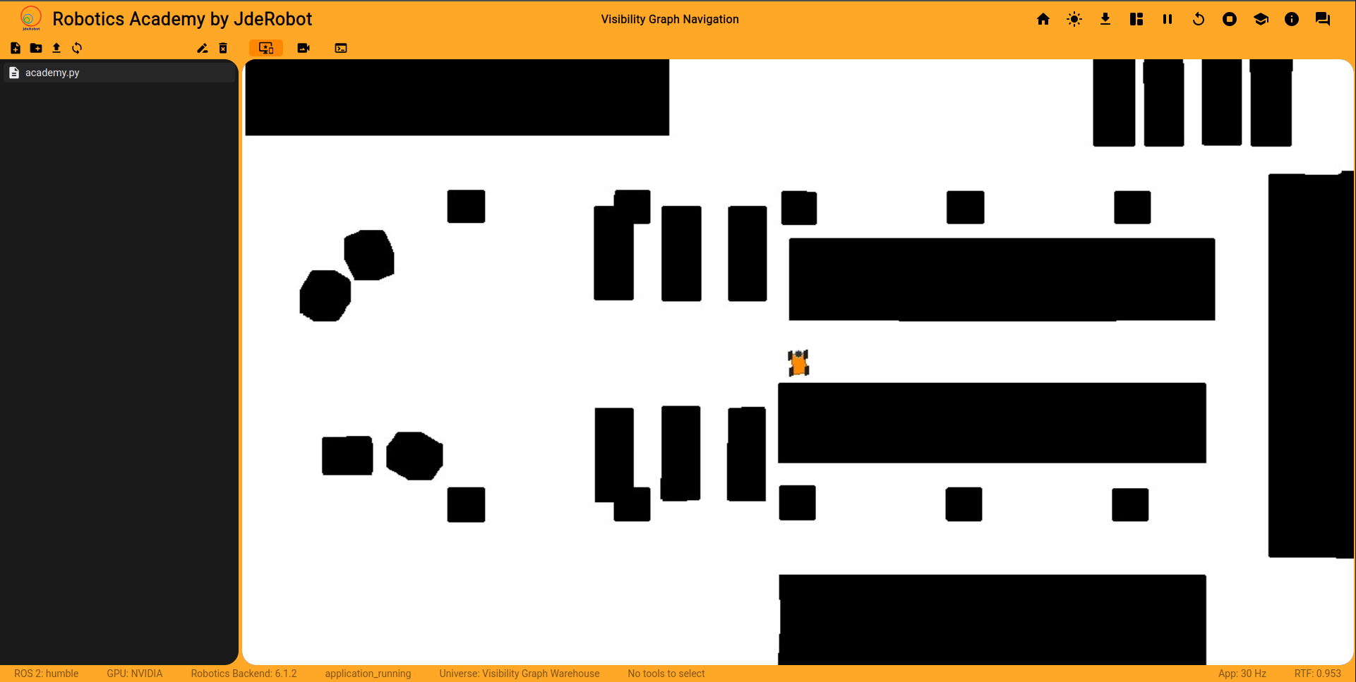 Durante estas últimas semanas he estado puliendo varios detalles relacionados con la integración del ejercicio de visibility graph en Robotics Academy.