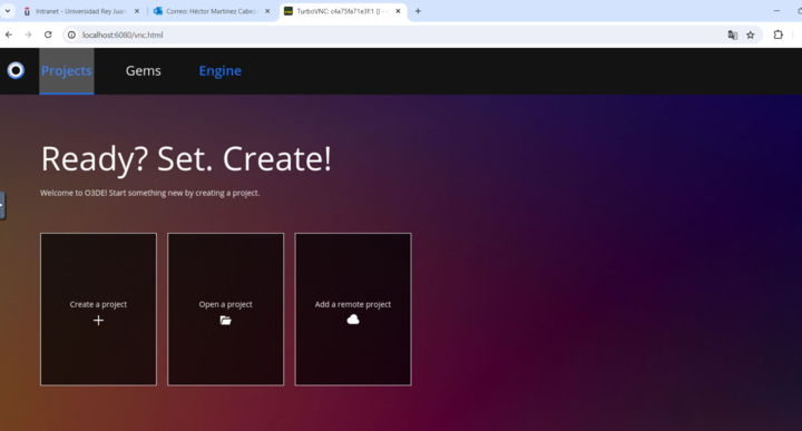 Despliegue en servidor VNC y noVNC, y creación de primeros proyectos O3DE
